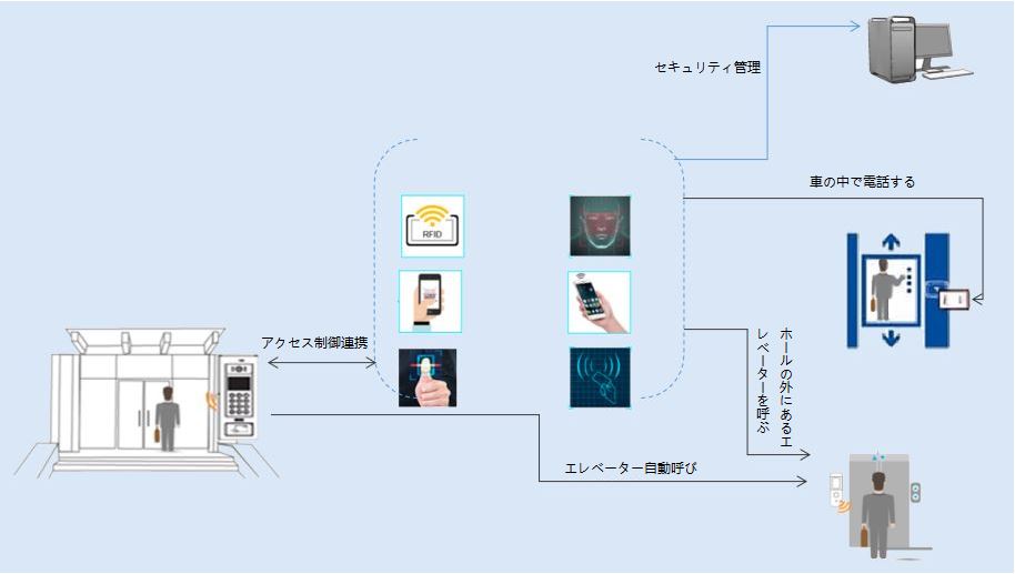 エレベーターアクセス制御システムは、エレベーターカー內(nèi)のリーダーとエレベーター機(jī)械室にあるコントローラーから成り立っています。