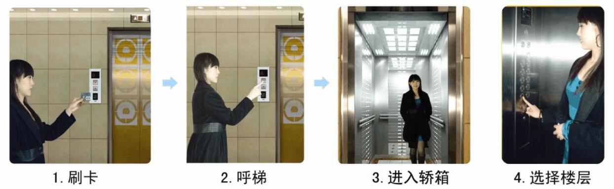 業(yè)主回家時,在門禁處刷卡后即不需要再使用外呼呼叫電梯,電梯自動行駛到其所在樓層。